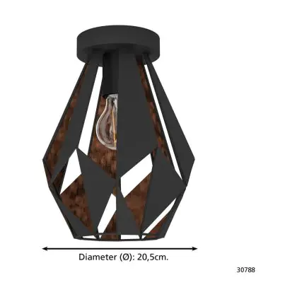 Eglo Ceiling Light Carlton 1 Steel Black Copper | IP20 - Suitable for 1x E27