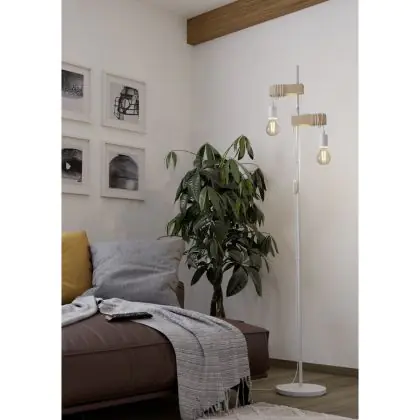 Eglo Floor Lamp Townshend Steel White Wood | IP20 - Suitable for 2x E27