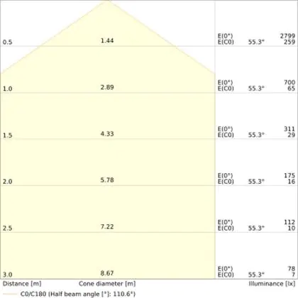 ![]() The colour code is a combination of colour rendering (CRI) and light colour (Kelvin). The first number indicates the colour rendering (1 = very poor colour rendering, 9 = maximum colour fastness). The second and third number contains the light colour. Example: the colour code 830 consists of good colour rendering (8) and warm white light (3000K). |