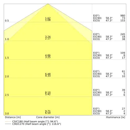 ![]() The colour code is a combination of colour rendering (CRI) and light colour (Kelvin). The first number indicates the colour rendering (1 = very poor colour rendering, 9 = maximum colour fastness). The second and third number contains the light colour. Example: the colour code 830 consists of good colour rendering (8) and warm white light (3000K). |