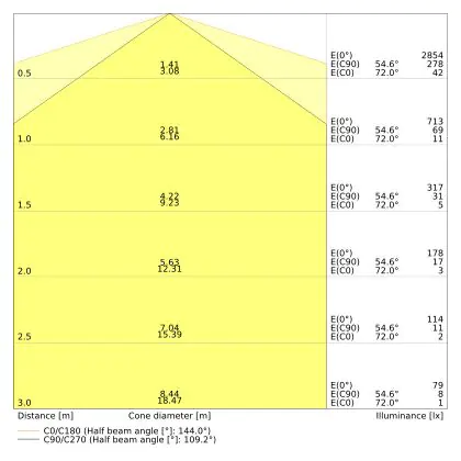 The number of lumens (lm) is the light output of a light source. The higher the number of lumens, the more light the light source emits. The wattage and the number of lumens are not connected to each other. An LED lamp with a low wattage can have a higher number of lumens than a conventional lamp with a high wattage.