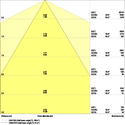 A beam angle indicates the angle of the light beam coming from a light source. The smaller the radiation angle in degrees (D), the narrower the beam angle.