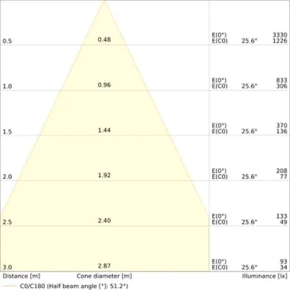 ![]() The colour code is a combination of colour rendering (CRI) and light colour (Kelvin). The first number indicates the colour rendering (1 = very poor colour rendering, 9 = maximum colour fastness). The second and third number contains the light colour. Example: the colour code 830 consists of good colour rendering (8) and warm white light (3000K). |