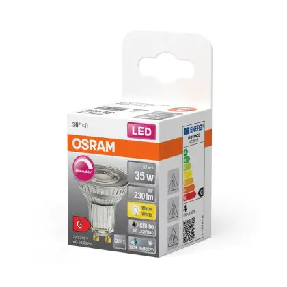 Osram LED Superstar Reflector Spot GU10 PAR16 3.7W 230lm 36D - 927 Extra Warm White | Best Colour Rendering - Dimmable - Replaces 35W