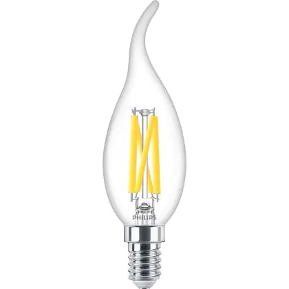 Philips MASTER LED E14 Bent-tip Candle Filament Clear 3.4W 470lm - 922-927 Dim To Warm | Best Colour Rendering - Dimmable - Replaces 40W